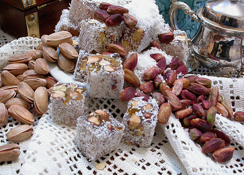 Şeker, Mısır nişastası, Su, Antep fıstığı, Hindistan cevizi, Doğala özdeş aroma (Vanilin), Asitliği düzenleyici sitrik asit (E330)