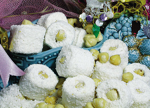 Şeker, Mısır nişastası, Su, Fındık, Hindistan cevizi, Çöğen Suyu, Glikoz Şurubu, Asitliği düzenleyici sitrik asit (E330), Doğala özdeş aroma (Vanilin)
